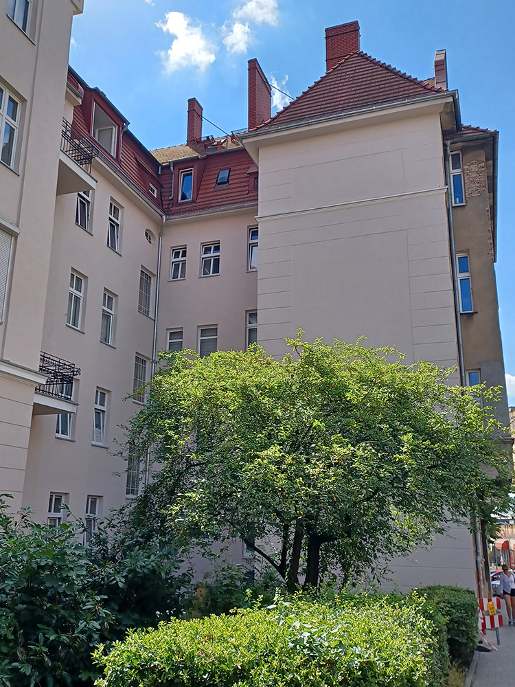Trwają prace związane z odnowieniem elewacji budynku przy ulicy Śniadeckich 3-5. Zakończył się już jej pierwszy etap, obecnie trwają prace związane z izolacją budynku. Po uzyskaniu niezbędnych pozwoleń z Zarządu Dróg Miejskich rozpocznie się kolejny etap prac, związany z odnowieniem elewacji od strony ul. Śniadeckich.