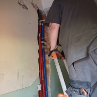 Rozpoczęły się prace związane z wymianą poziomu i pionów ciepłej wody użytkowej w budynku przy ul. Stablewskiego 9-9a. Inwestycja realizowana jest przez firmę KPT INSTALACJE. Zakres działań obejmuje także remont wewnętrznej instalacji linii zasilającej WLZ, a także prace wykończeniowe oraz malarskie.