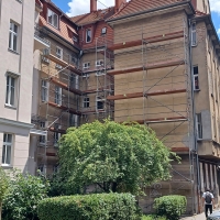 Rozpoczęły się prace związane z remontem elewacji budynków przy ul. Śniadeckich 3 - 5. Zakres prac obejmuje wymianę tynków, malowanie elewacji, izolację fundamentów, wymianę stolarki okiennej w częściach wspólnych, odtworzenie detali architektonicznych oraz wymianę rynien, rur spustowych i obróbek blacharskich.